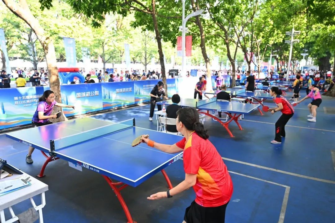 启动仪式后,第十五届全国运动会群众比赛乒乓球项目决赛正式开赛。与此同时,超过3000名市民踊跃参加活动现场的30余项丰富多彩的全民健身主题活动,沉浸式打卡体育消费嘉年华市集,感受全民健身的无限魅力。