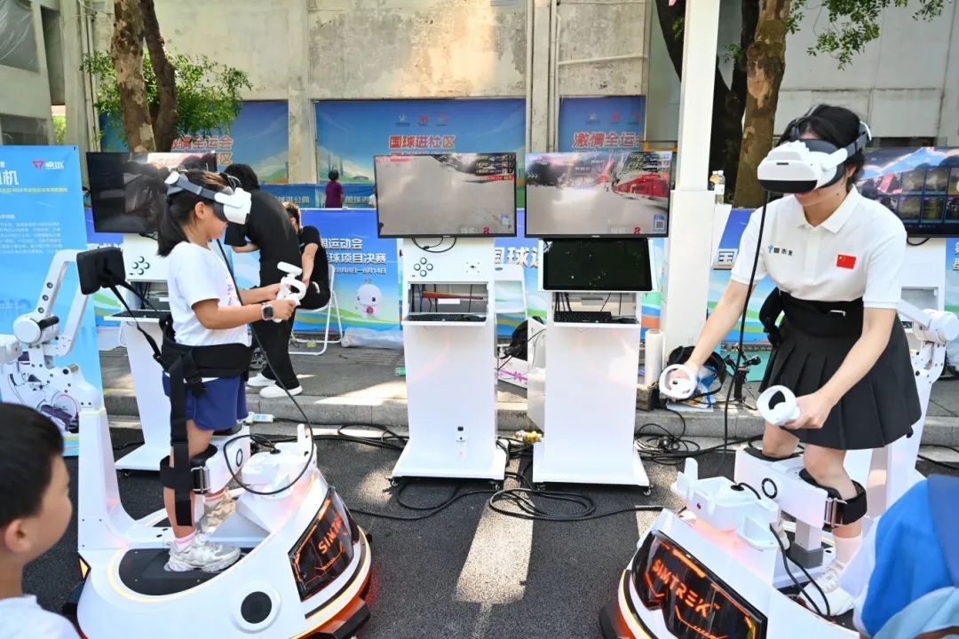 匹克球、马术、飞盘等时尚新兴项目吸引大批市民尝鲜;VR体育、无人机足球、汽车模型等科技体育项目展现体育与科技的完美融合;全民健康欢乐跑成为亮丽风景线,数百名跑友用脚步丈量健康。